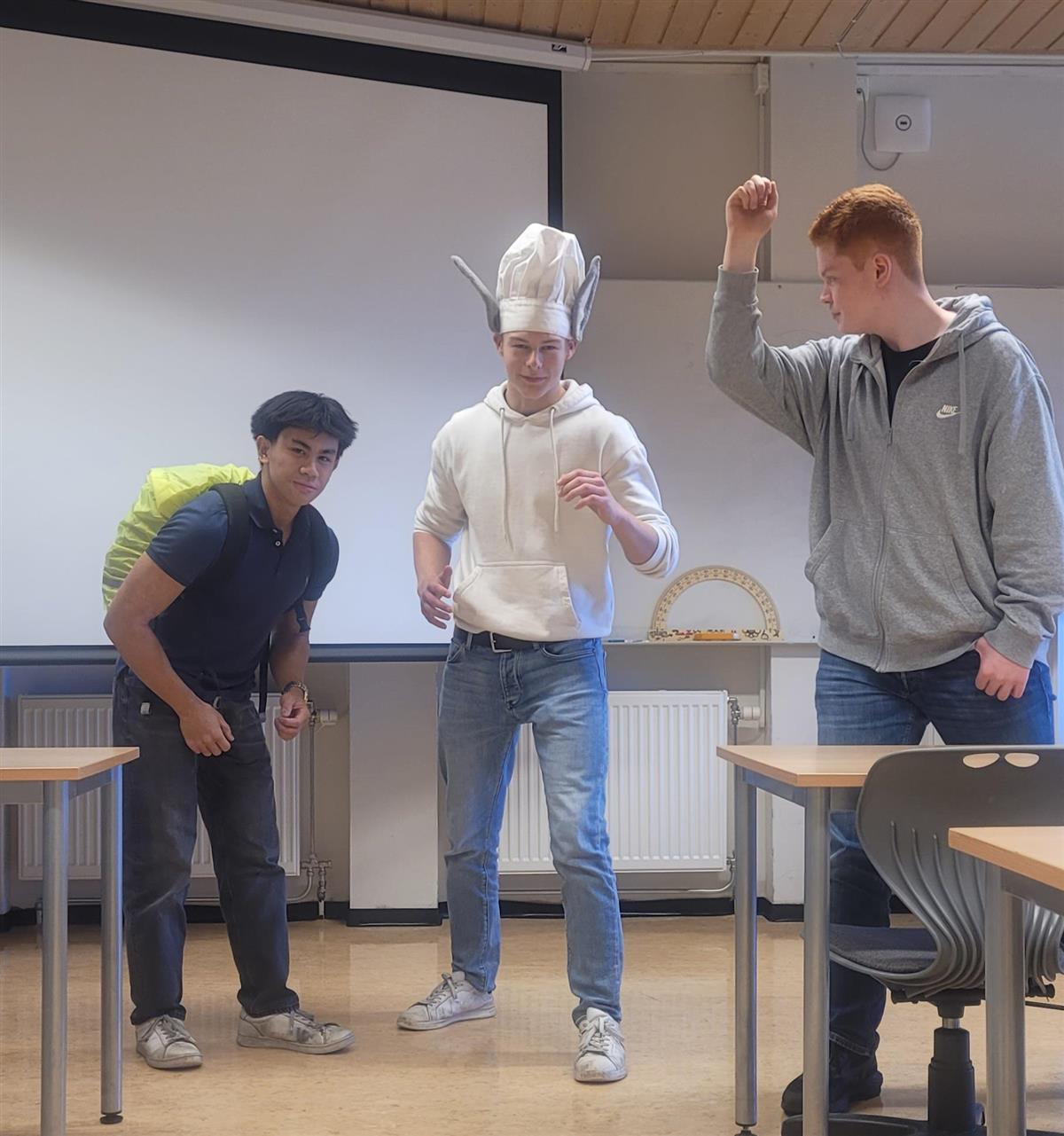 På fredag hadde franskklassen på VG1 stor glede av å fremføre skuespill på fransk. Publikum fra spansk- og tyskklassen ble vitner til både kreative og morsomme fremstillinger av de folkekjære fortellingene «Le Lièreve et la Tortue» (Haren og skilpadden) og «Blanche-Neige» (Snehvit).